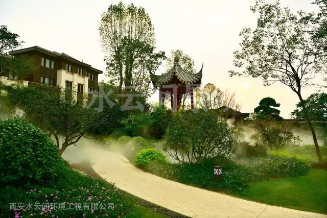在庭院別墅中加入霧噴效果,可營造飄渺霧效,讓庭院景觀不在單調(diào)。滿足了人們對美好環(huán)境的追求,飄渺靈動的霧效可以讓庭院景觀更添一份神秘、優(yōu)雅。同時水霧有降溫、降塵凈化空氣的作用。